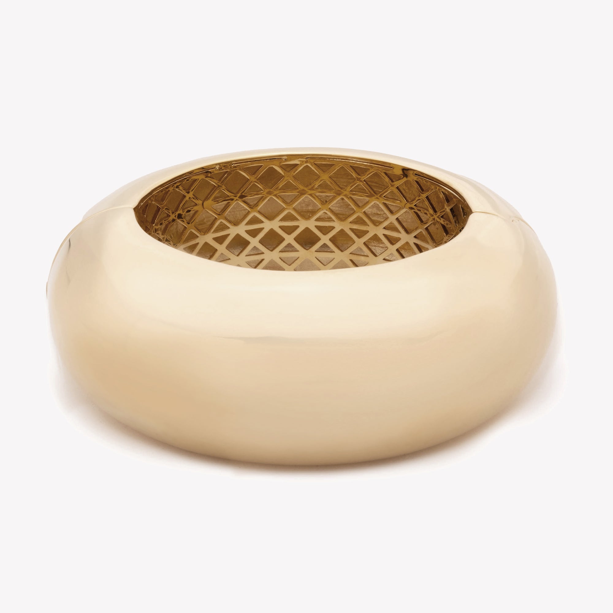 The Domed Cuff Bracelet, finished in 12 Karat Gold, is a classic, hinged oval cuff bracelet. This inimitable piece has been created and by hand, the interior entirely caged for comfort. Opens with a custom push closure at one side. Available exclusively at eddieborgo.com.
