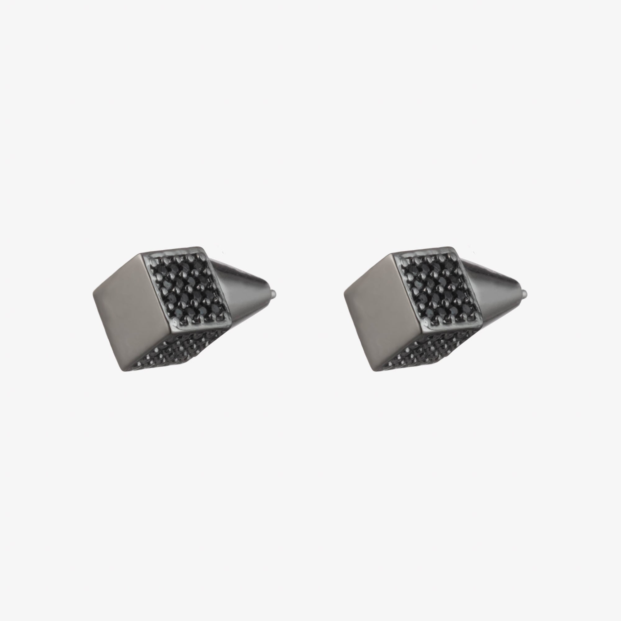 The Pavé Cube Stud Earrings, finished in Blackened Silver, are a classic Eddie Borgo stud earring in a cube shape. The front facing square is finished in polished Blackened Silver, while the four sides are intricately hand set with pavé Onyx. The shape is hollow, caged at the back to remain comfortable and lightweight. Secure with a custom Eddie Borgo earring back. Surgical steel posts, for pierced ears.