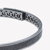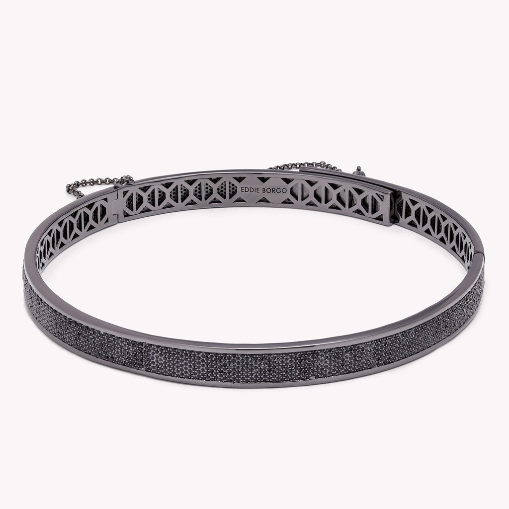 The Pavé Safety Chain Choker, finished in blackened Silver and set with hand cut jet pavé crystals. This unique Eddie Borgo collar brings a dark romance to our most coveted piece. The piano hinges at each side allow the piece to open completely and easily slip over the neck.