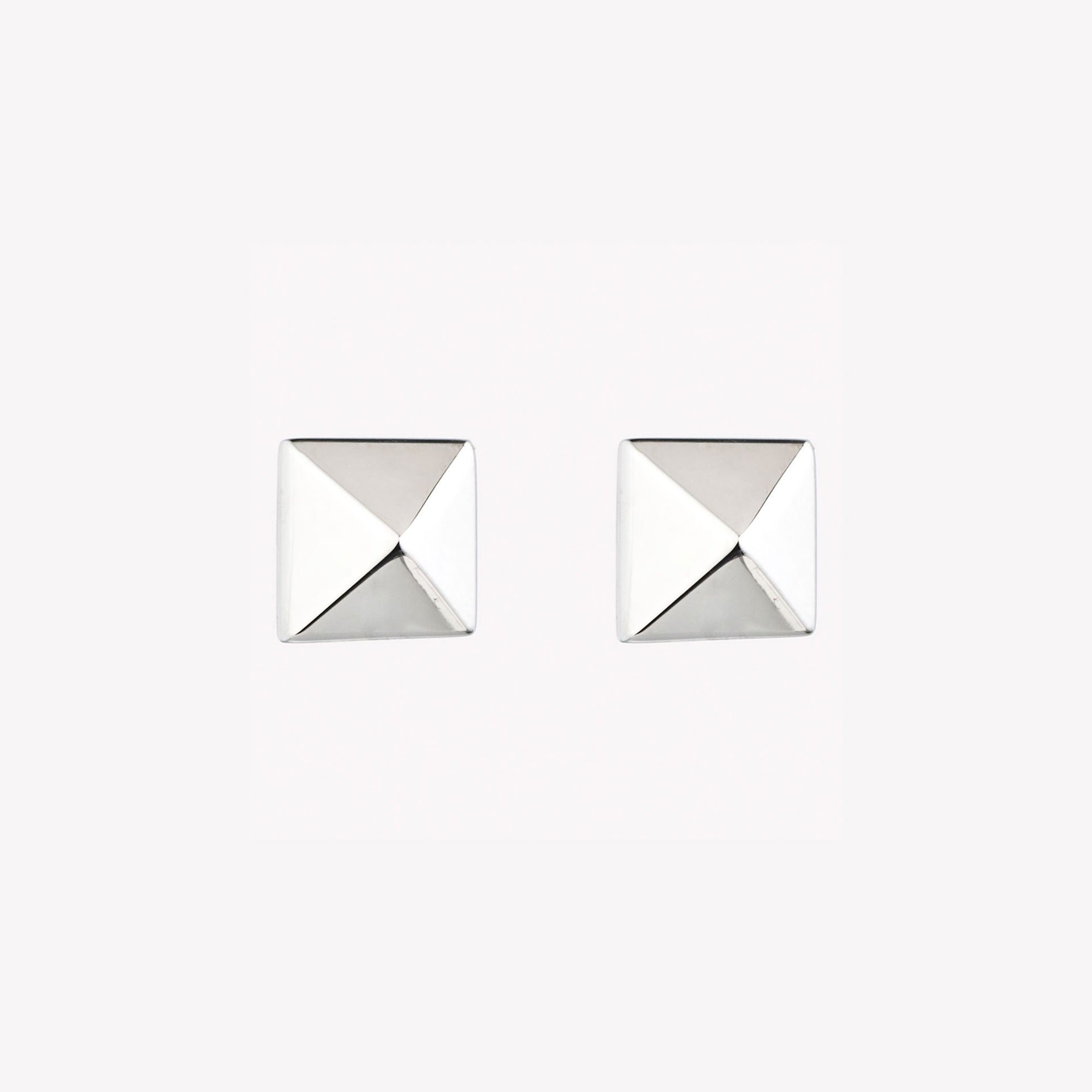The Pyramid Stud Earrings, finished in silver, are our classic pyramid stud earring, created for everyday wear. Secure with a custom Eddie Borgo earring back. Surgical steel posts, for pierced ears.