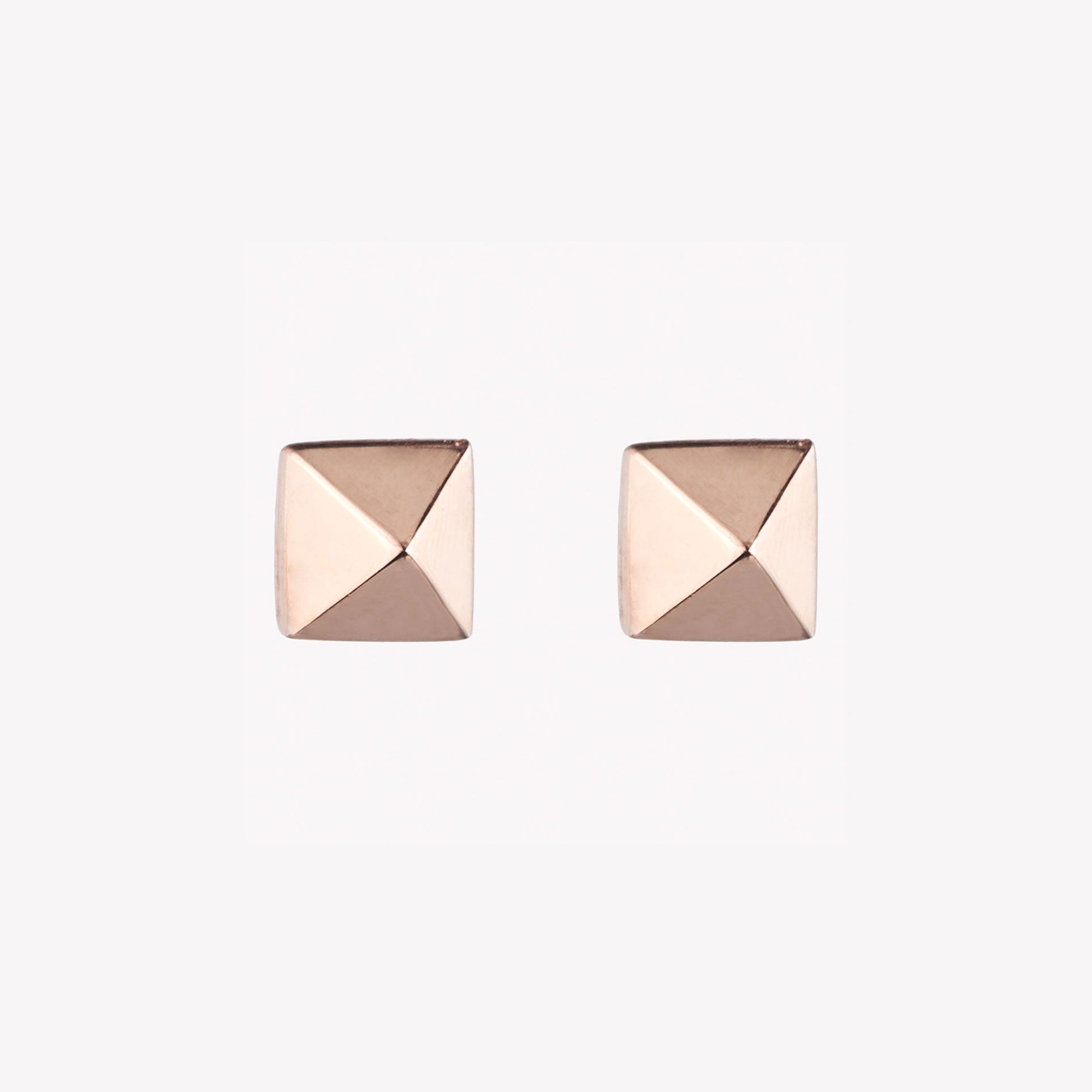 The Pyramid Stud Earrings, finished in 12 Karat Rose Gold, are our classic pyramid stud earring, created for everyday wear. Secure with a custom Eddie Borgo earring back. Surgical steel posts, for pierced ears.