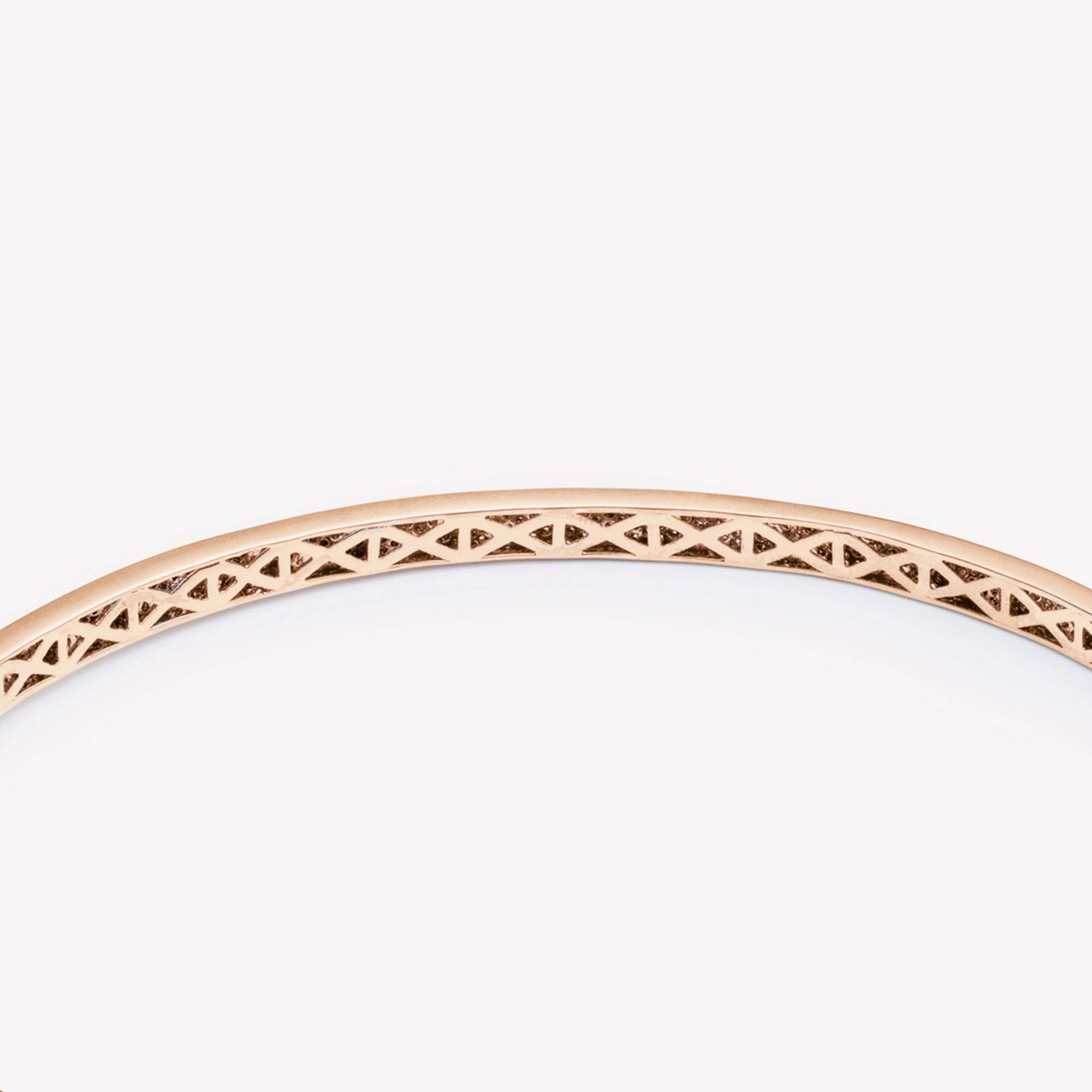 The Thin Pavé Safety Chain Choker, finished in 12 Karat Rose Gold and entirely hand set with a ribbon of pavé crystal. The neckpiece easily opens with handmade piano hinges at each side and and closes with a delicate safety chain. Wear with the chain draped in the front or down the back of the neck.