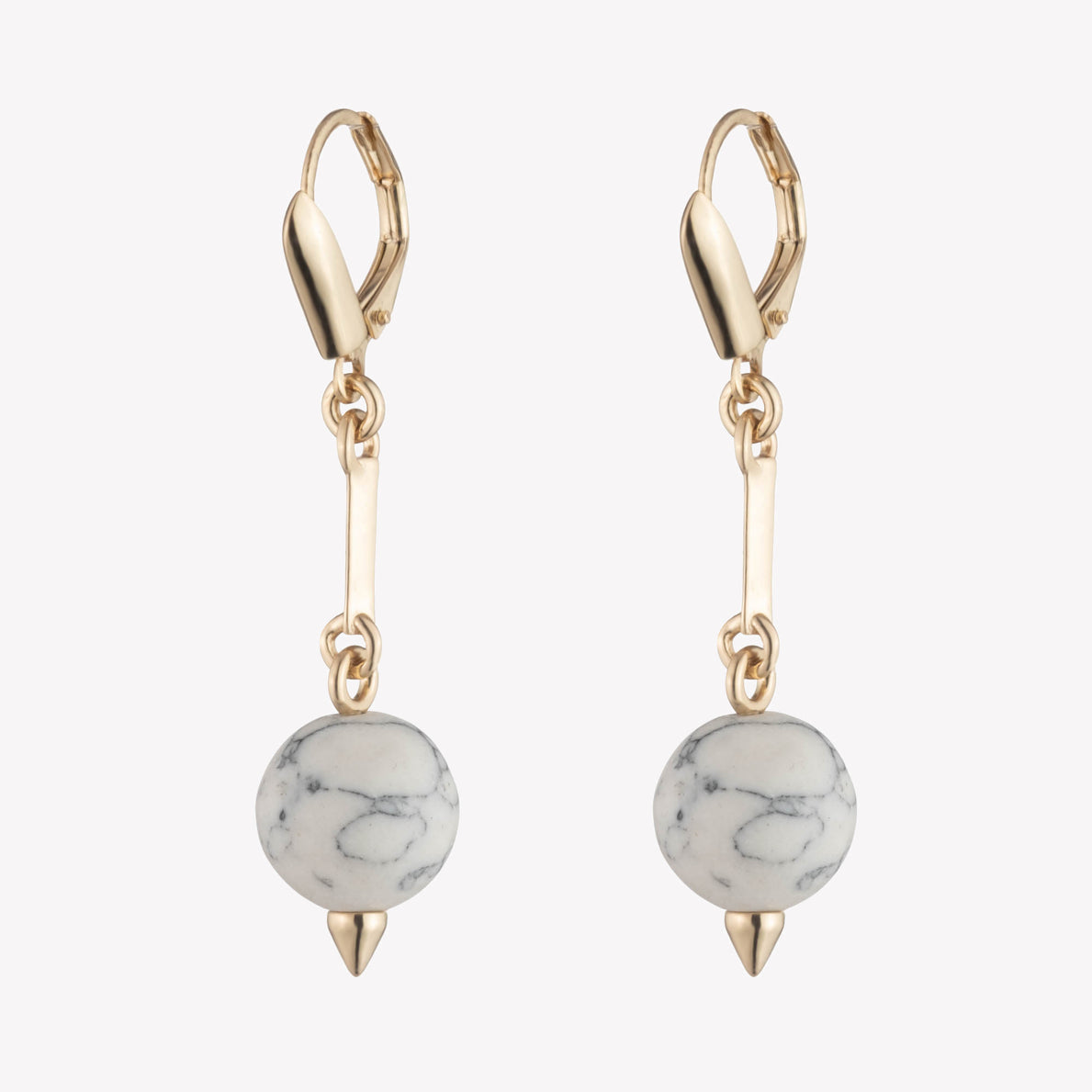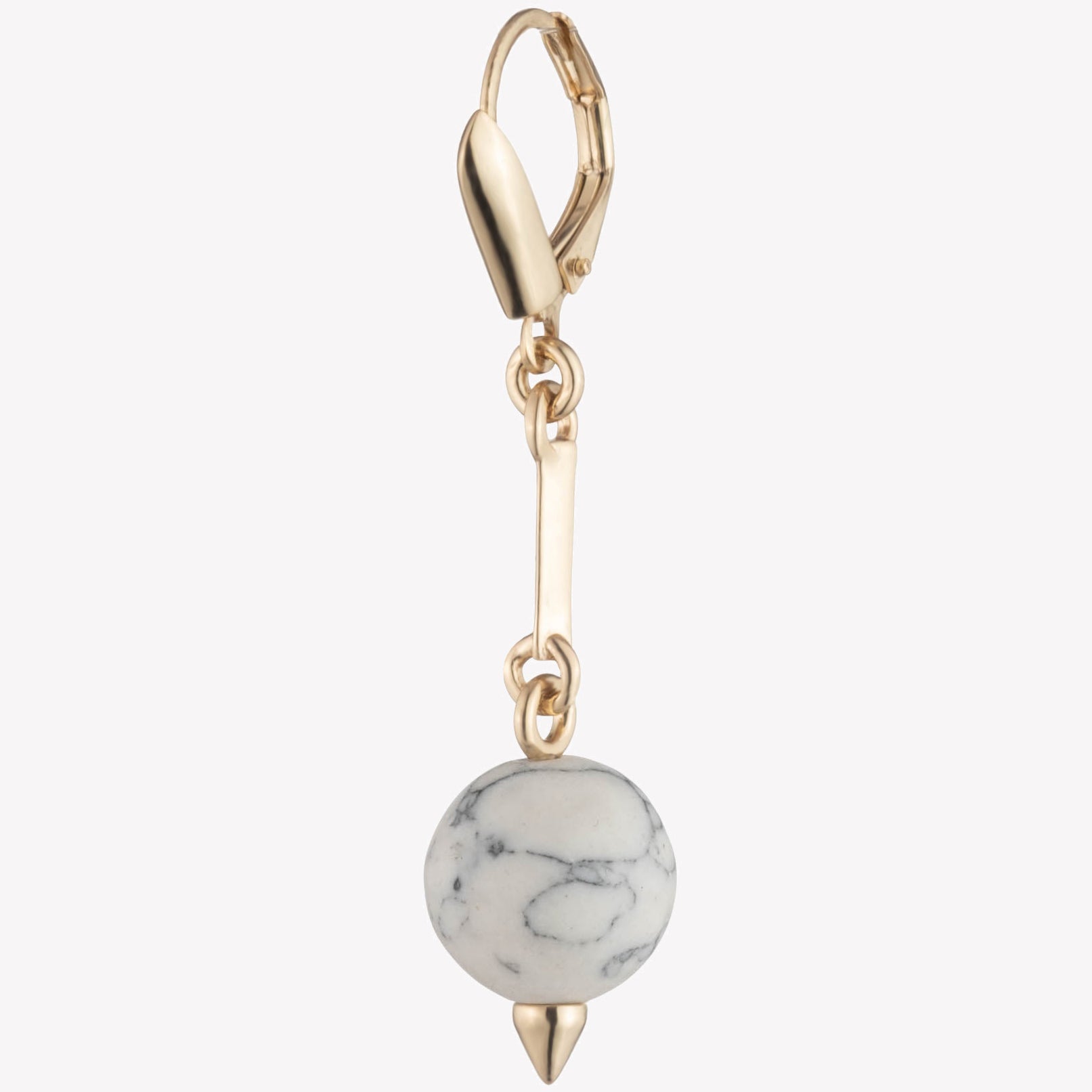 The Beaded Sphere Drop Earrings, finished in 12 Karat Gold, suspend a hand cut, genuine Howlite orb from a delicate bar chain. These artful earrings are entirely created by hand and are lightweight and can be worn throughout the day. Secure with a custom Eddie Borgo french clip, for pierced ears.