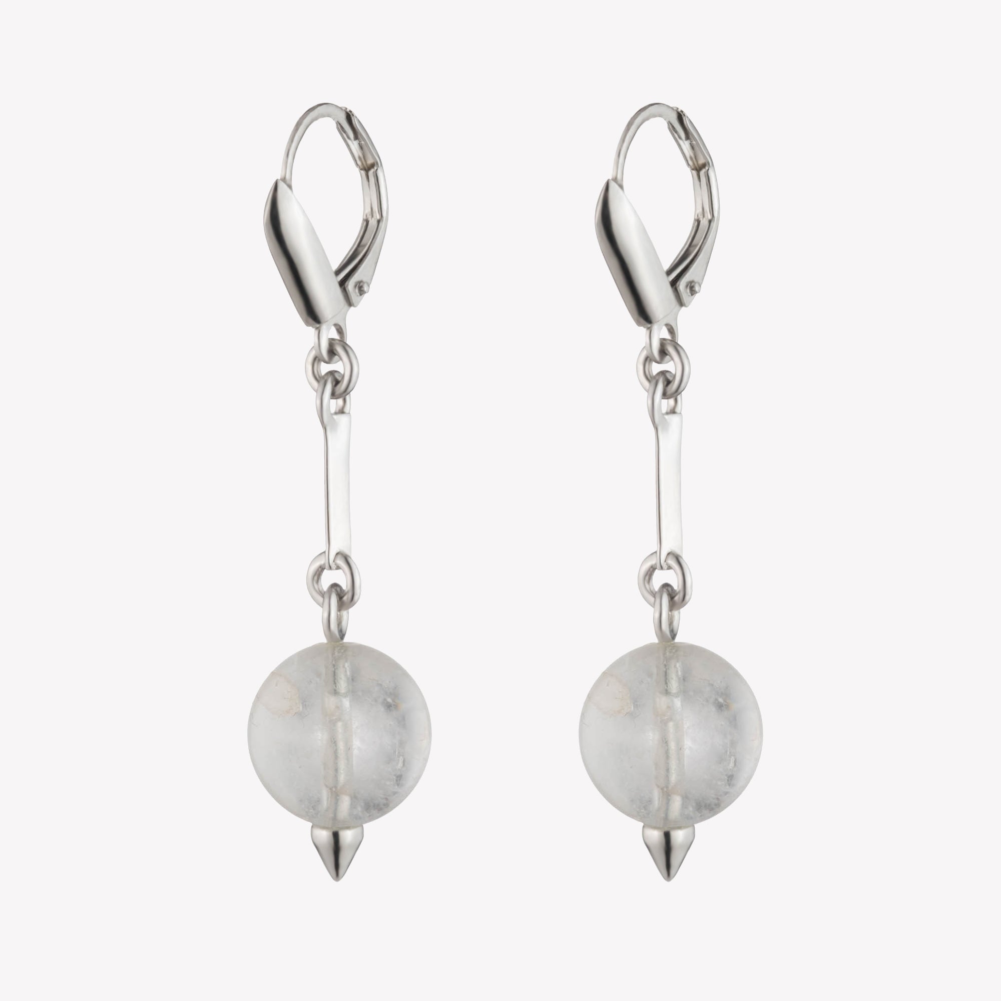 The Beaded Sphere Drop Earrings, finished in Silver, suspend a hand cut rock crystal orb from a delicate bar chain. These artful earrings are entirely created by hand and are lightweight and can be worn throughout the day. Secure with a custom Eddie Borgo french clip, for pierced ears.