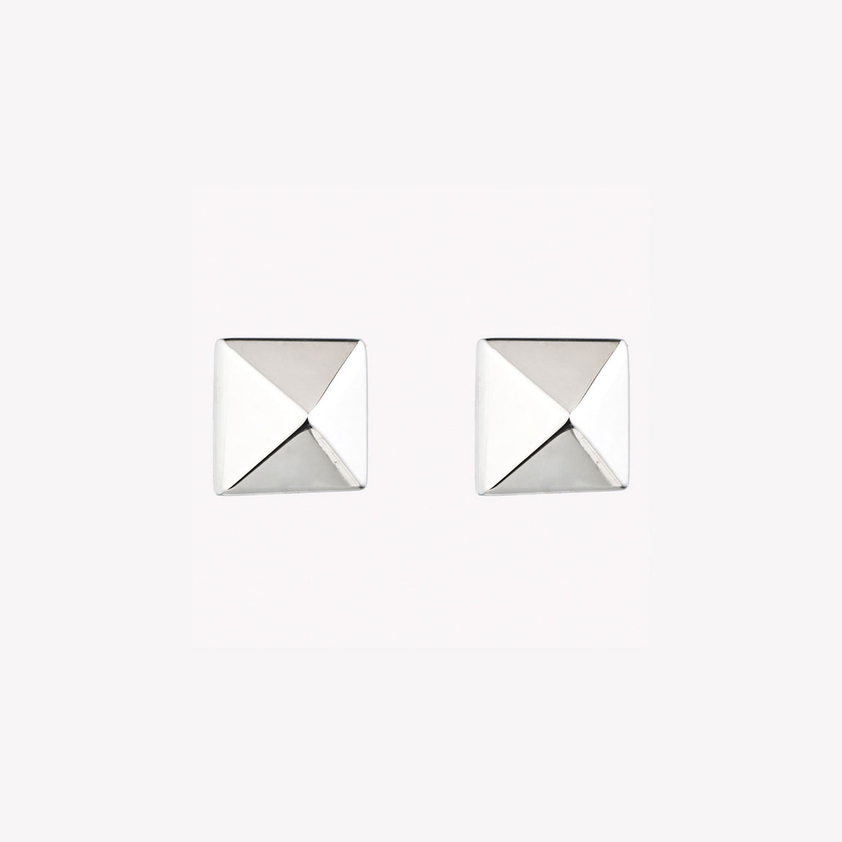 The Pyramid Stud Earrings, finished in silver, are our classic pyramid stud earring, created for everyday wear. Secure with a custom Eddie Borgo earring back. Surgical steel posts, for pierced ears.