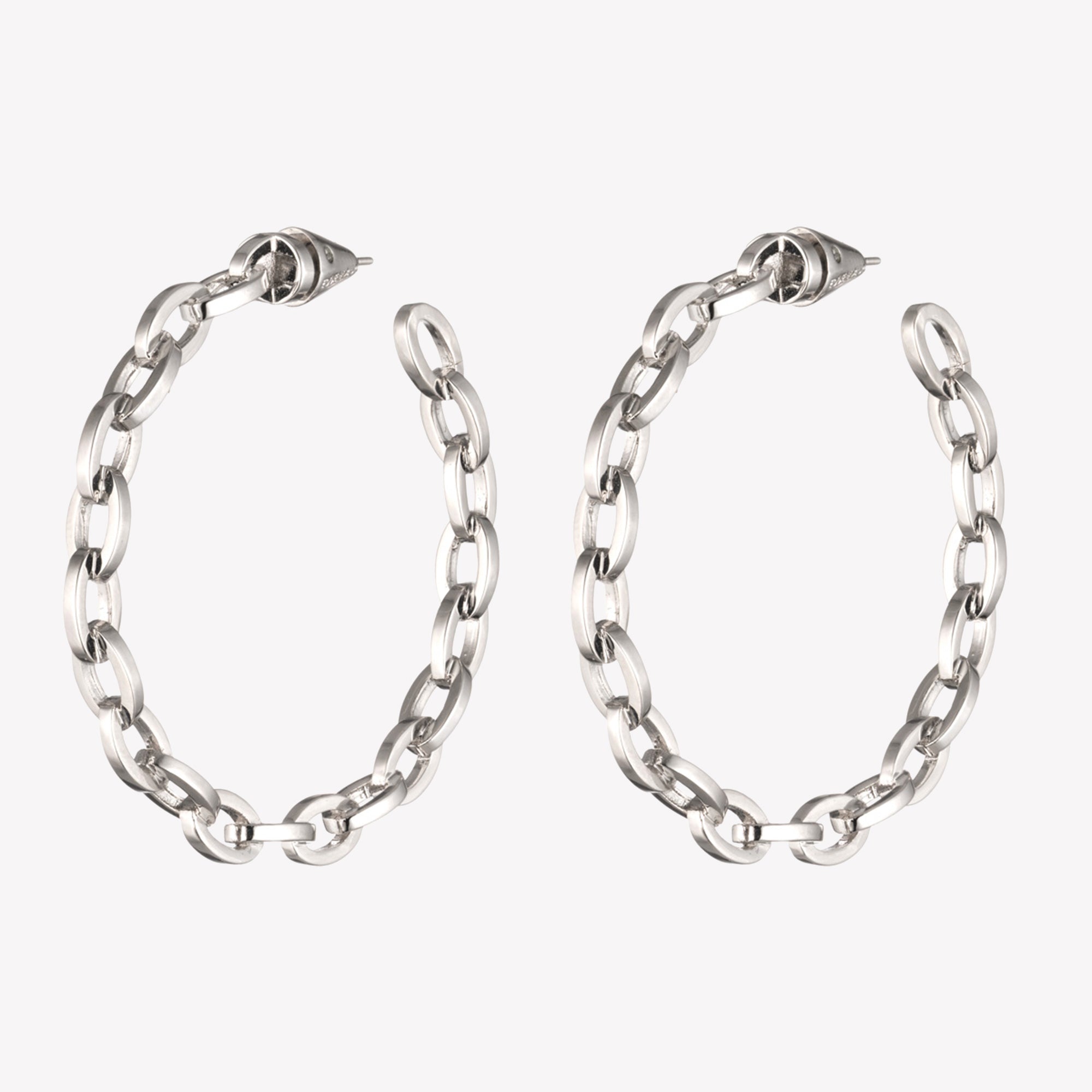 The Ellipse Link Earrings, finished in Silver, have been created with a composition of hand forged oval loops. These unique heritage link hoop earrings are classic and seasonless, lightweight and wearable throughout the day. Pair with the ellipse link bracelet. Secure onto ear with a custom Eddie Borgo earring back. Surgical steel posts, for pierced ears.