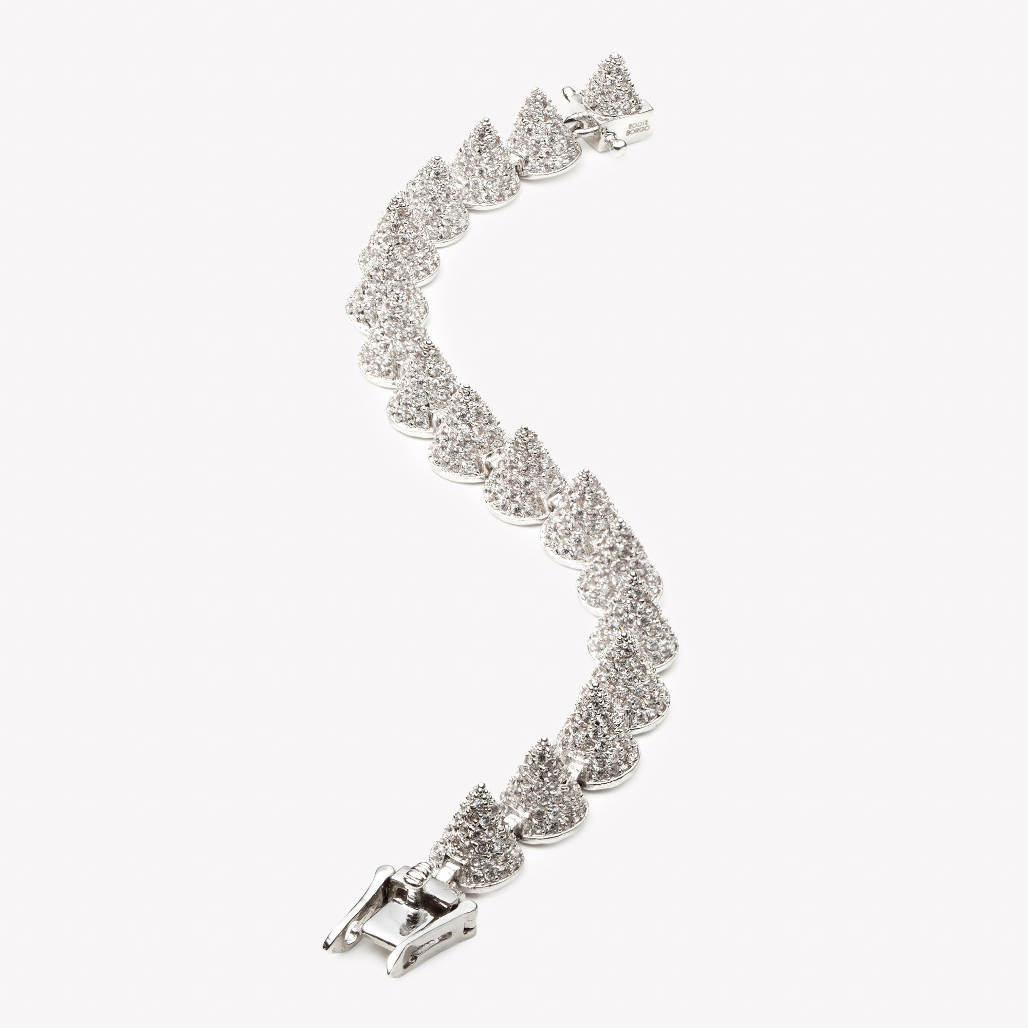 THE PAVÉ CONE BRACELET, finished IN silver, IS OUR SIGNATURE CONE BRACELET, COMPOSED OF DELICATE CONICAL SHAPES JOINED TOGETHER BY HAND WITH INDIVIDUAL HINGES AND PRONG SET WITH PAVÉ CRYSTAL. A SIGNATURE EDDIE BORGO PIECE, WEAR THE PAVÉ CONE BRACELET ALONE OR ALONGSIDE YOUR OTHER EDDIE BORGO BRACELETS. CLOSE WITH A BOX AND TOUNGE CLASP AND SECURE WITH TWO SAFETY LATCHES.