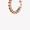 THE SMALL INLAID CUBE HOOP EARRINGS, finished IN 12 KARAT ROSE GOLD, HAVE BEEN CAREFULLY INLAID WITH DELICATE SEMI PRECIOUS CUBES OF CARNELIAN. EACH CUBE IS INLAID BY HAND, THEN CAREFULLY FINISHED WITH RED CLOISONNÉ ENAMEL ALONG EACH SIDE.