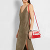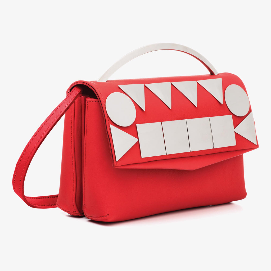 The Boyd Vanity Shoulder Bag is designed in Dakota Red Calf Leather, embellished with flat, paillette disks, and topped with a signature arc handle, finished in silver. A pocketed faille-lined interior has been considered so that you do not need to carry a wallet. The detachable shoulder strap provides an alternative carry option for busy days. Removable charm included.