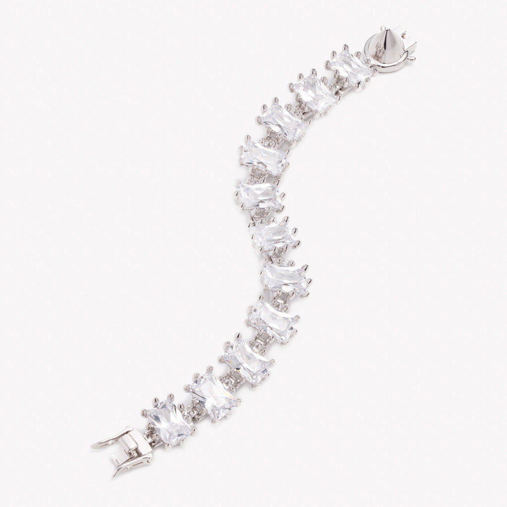The Rectangle Estate Bracelet, finished in silver, has been entirely bezel set with hand cut, hand faceted crystals. Each stone has been emerald cut by hand with step-cut facets, for subtle shimmer. Closes with a custom Eddie Borgo closure, secure with two safety latches.