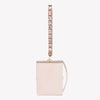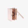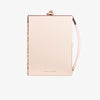 The Lou Wristlet is a sculpted nécessaire finished in 12 Karat Rose Gold, featuring a mirror, discreet card holder, money clip, and a removable, blush calf leather strap embellished with hand set crystal studS. The perfect wristlet for a night out, or to slip inside your handbag.