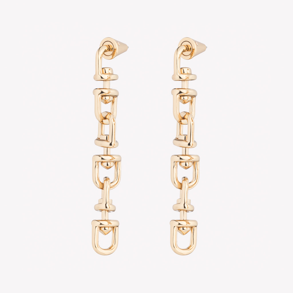 The Fame Link Drop Earrings, finished in 12 KARAT GOLD, are created by forming a classic Eddie Borgo link into an everyday drop earring. Hand formed U-rings are connected by engineered swivel links for movement. Closes with a custom Eddie Borgo earring backing.