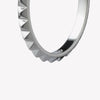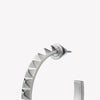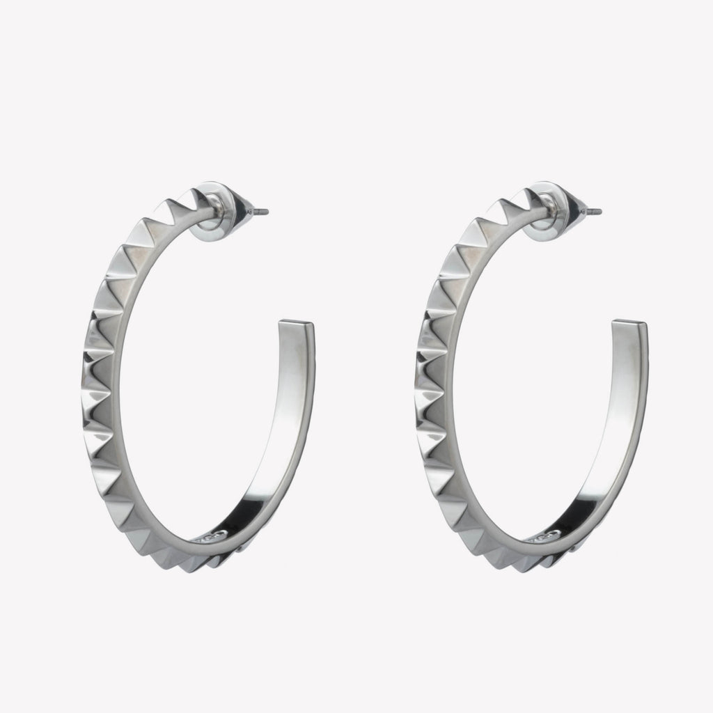 The Pyramid Hoop Earrings, finished in silver, have been created from our signature pyramid motif. Molded by hand and created to be lightweight, these timeless hoops can be worn throughout the day. Secure onto ear with custom Eddie Borgo earring backing. Surgical steel posts, for pierced ears.