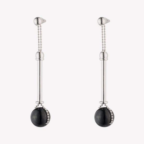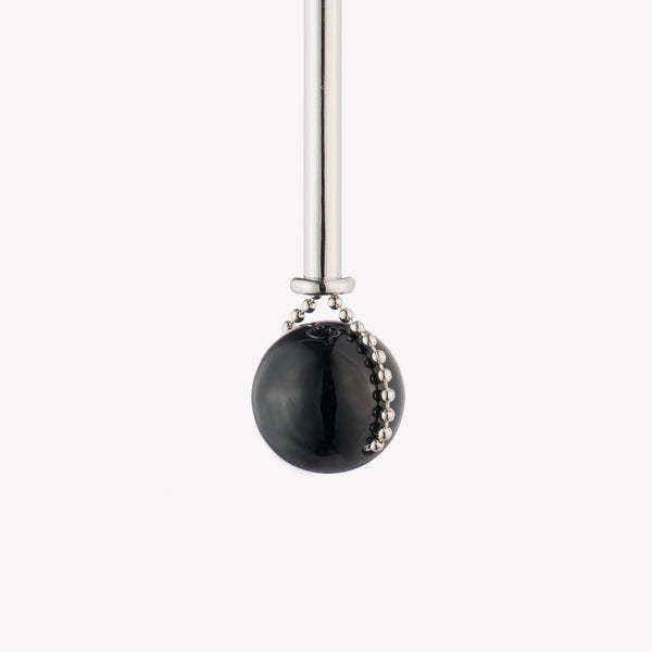 CABOCHON TEARDROP HOOP EARRINGS - ONYX
