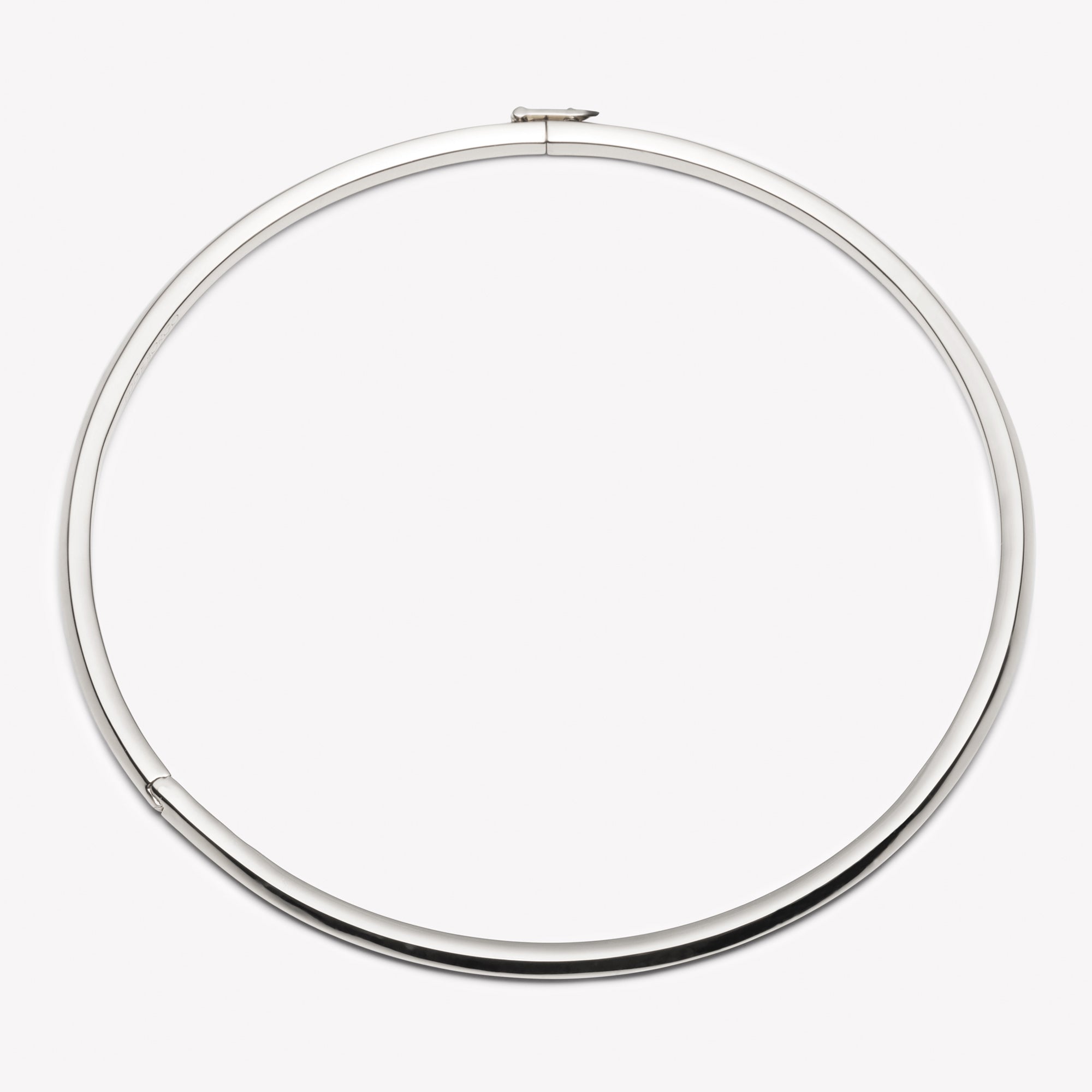 THE PEAKED COLLAR, finished IN SILVER, IS SUBTLY FACETED TO REFLECT THE LIGHT. CREATED TO FALL AT THE TOP OF THE COLLAR BONE, THIS LIGHTWEIGHT, MINIMAL NECKPIECE OPENS WITH A SIMPLE HINGE AND SAFETY CLOSURE. WEAR WITH YOUR DELICATE PENDANT NECKLACES.