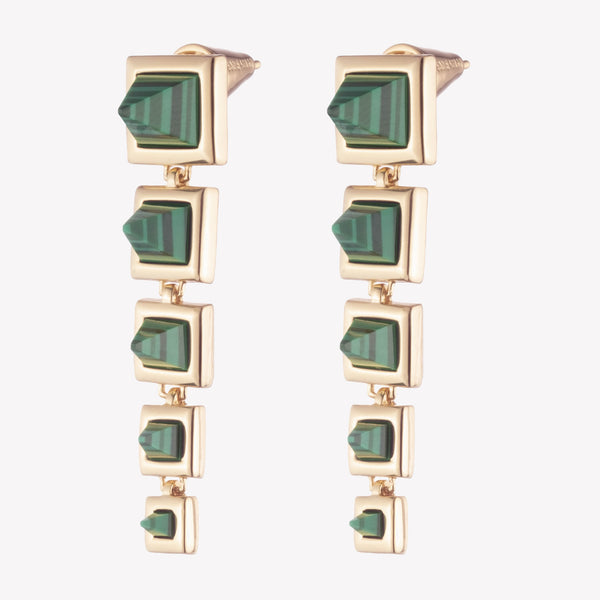 GRADUATED PYRAMID EARRINGS - MALACHITE