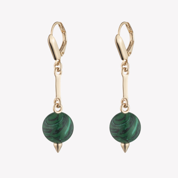 BEADED SPHERE DROP EARRINGS - MALACHITE