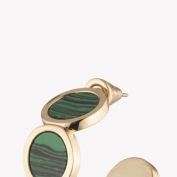 INLAID CROSSBAR HOOP EARRINGS - MALACHITE