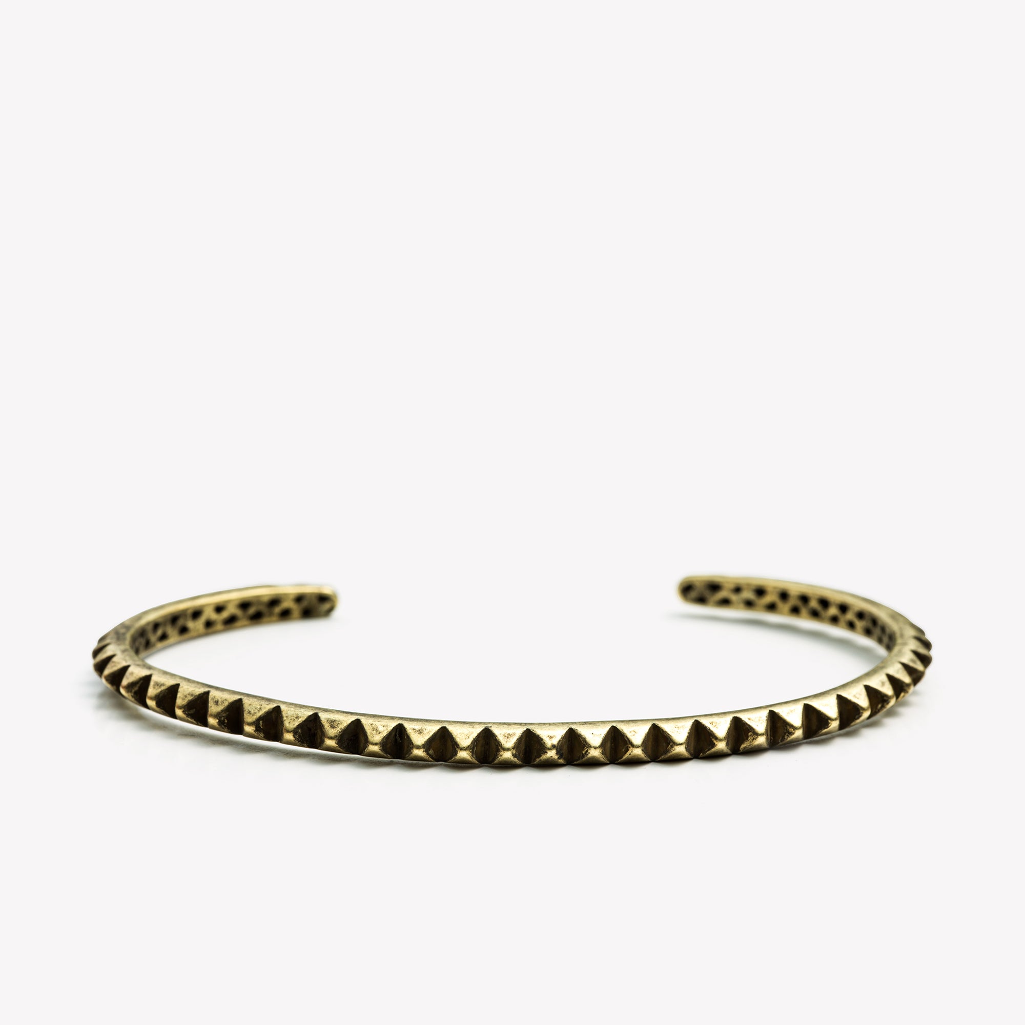 THE PYRAMID CUFF IN STERLING SILVER HAS BEEN FINISHED IN OXIDIZED BRASS VERMEIL. THIS IS A CLASSIC SLIP ON CUFF, HAND CARVED INTO OUR SIGNATURE PYRAMID MOTIF. FORMED BY HAND AND INTRICATELY CAGED FOR COMFORT, THIS IS A STYLE THAT CAN BE WORN EVERYDAY.