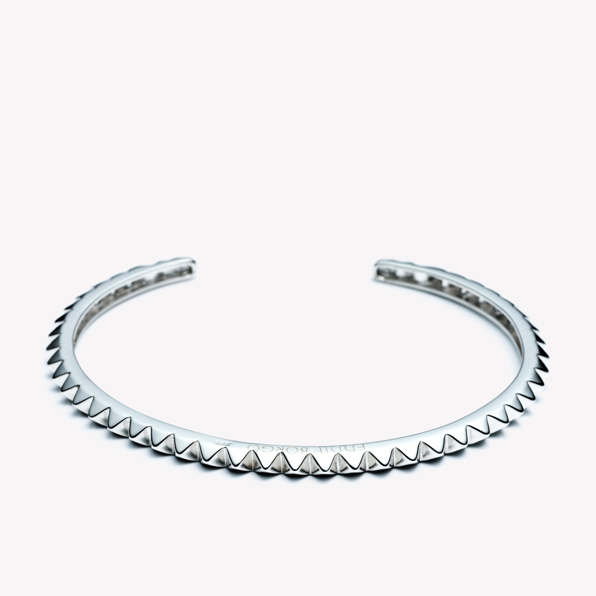 THE SMALL pyramid cuff in STERLING SILVER IS A CLASSIC EDDIE BORGO STYLE. ENTIRELY CARVED BY HAND AND CAGED ON THE BACKSIDE FOR COMFORT. CREATED TO EASILY SLIP ON AND OFF THE WRIST, THIS SIGNATURE BRACELET CAN BE WORN ALONE OR ALONGSIDE THE PYRAMID CUFF.