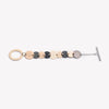 The Pinned Paillette Toggle Bracelet is composed of delicate paillette disks that have been hand finished - in antiqued rose gold, brushed gold, brushed silver and antiqued silver - and overlayed and pinned together by hand. The toggle closure can be either featured in the front or the back of the wrist.
