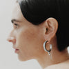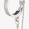 The Pavé Safety Chain Hoop Earrings, finished in Silver, are a classic flat hoop style entirely hand set in delicate pavé crystal. Created by hand, these unique earrings were finished as two overlapping bands, fixed into place with a vintage safety chain closure. Secure with a custom Eddie Borgo earring back. Surgical steel posts, for pierced ears.