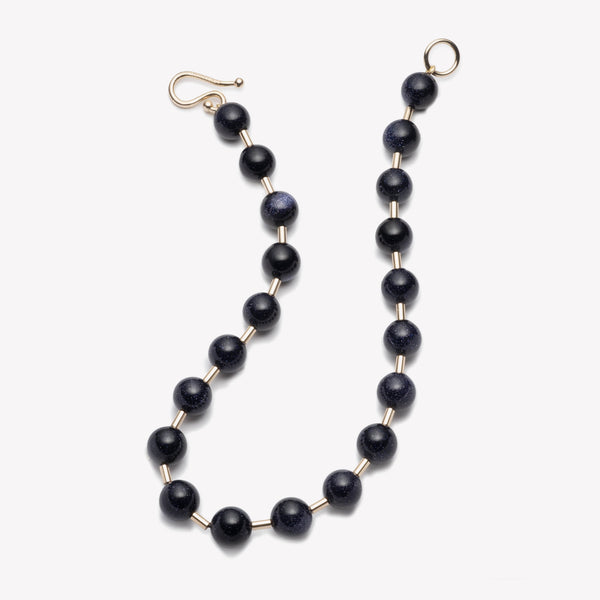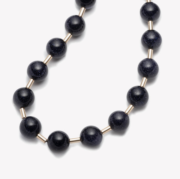 BEADED BALL CHAIN NECKLACE - LAPIS LAZULI