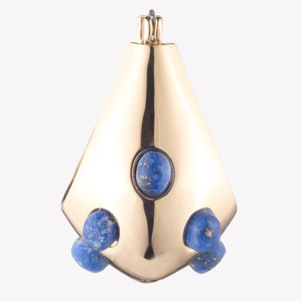 CABOCHON TEARDROP HOOP EARRINGS - LAPIS LAZULI