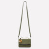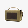 The Boyd Vanity Shoulder Bag is designed in Khaki Green, brushed twill and topped with a signature arc handle, finished in 12 Karat Gold. A pocketed faille-lined interior has been considered so that you do not need to carry a wallet. The detachable wide canvas shoulder strap provides an alternative carry option for busy days.