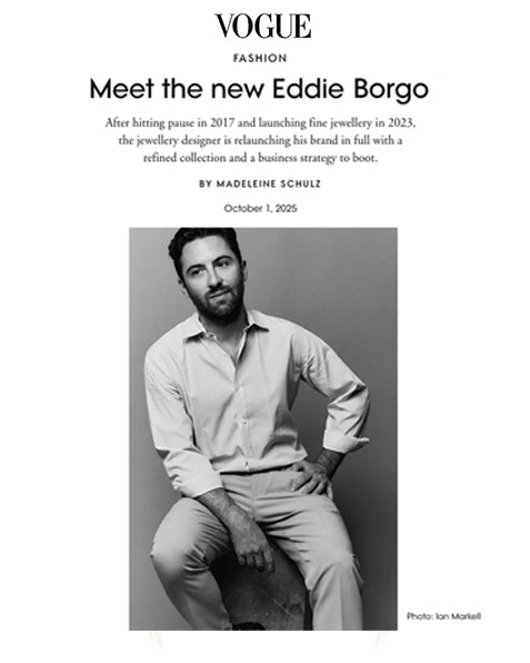 EDDIE BORGO BEGAN HIS EXPLORATION OF ADORNMENT AT UNIVERSITY, ESTABLISHING HIS PIONEERING POINT OF VIEW AT THAT TIME. HIS FASCINATION WITH THE IDEAS ATTACHED TO SYMBOLISM IN JEWELRY BEGAN TO EVOLVE IN A STAGE OF EXPERIMENTATION, AT WHICH TIME HE BEGAN MAKING JEWELRY AS ONE OFF PIECES. HE FORMALLY LAUNCHED HIS NAMESAKE COLLECTION IN 2008 AND HAS SINCE BEEN COMMISSIONED TO CREATE JEWELRY FOR THE RUNWAYS OF BURBERRY, MAX MARA, PROENZA SCHOULER AND ALTUZARRA, AMONG OTHERS; IN ADDITION TO COLLABORATING WITH TIFFANY & CO. ON A PRESTIGIOUS TIFFANY x EDDIE BORGO LEGACY COLLECTION.