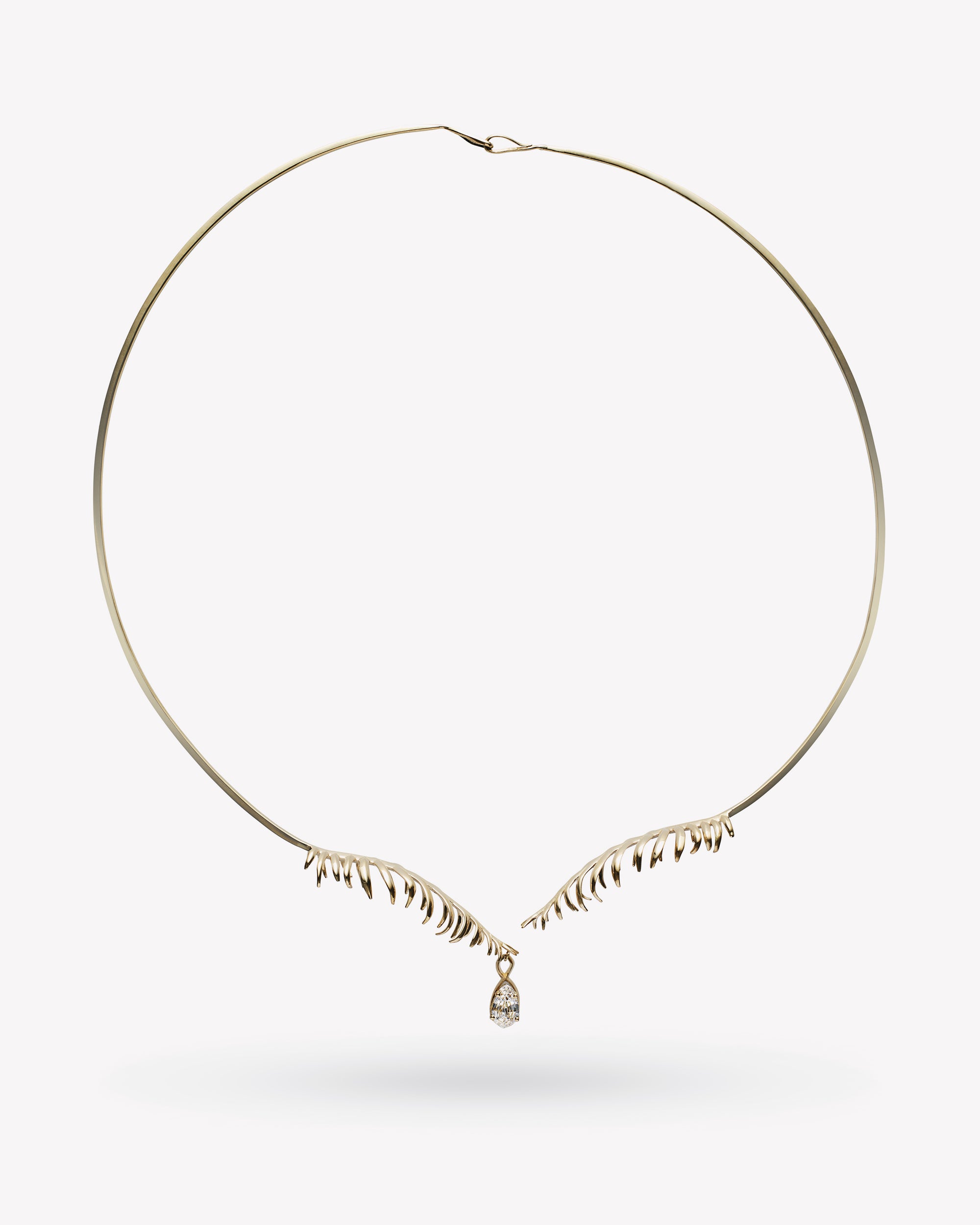 the creation of each piece is done entirely by hand, each delicate frond begins as a flat object, each leaf then carefully formed to establish life and movement. as a result, no two pieces are the same, each frond sculpted into a unique object in and of itself, each rare diamond the only of its kind.