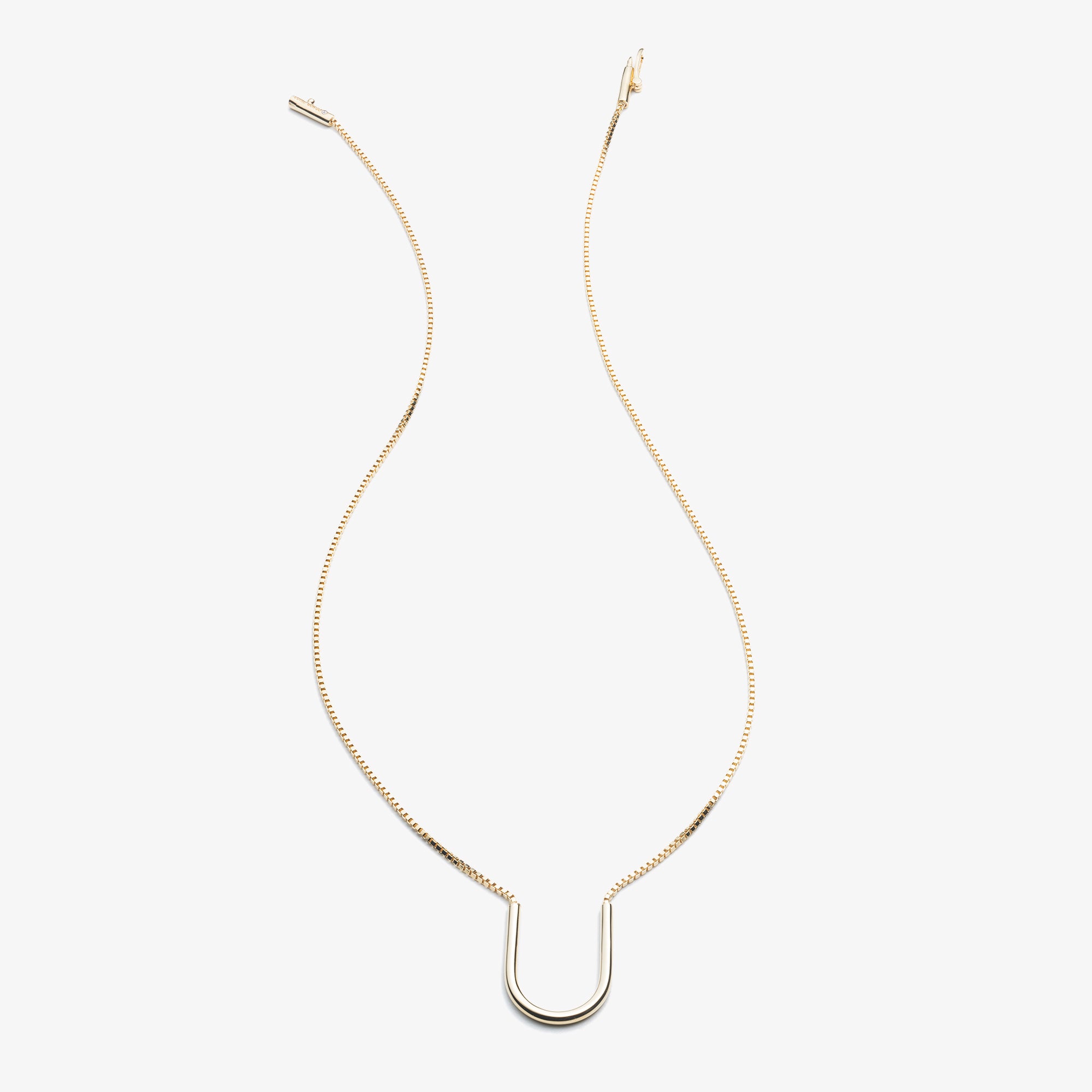 Our classic Allure Pendant, finished in 12 Karat Gold, is hung from a delicate, hand forged box chain. This classic u shape can be worn every day, in combination with your delicate pendant necklaces. Closes with a custom Eddie Borgo tube clasp and secures with a safety latch.