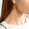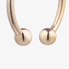 The Barbell Hoop Earrings, finished in 12 Karat Gold, are a modern alternative to a hoop earring. Held together at their center by a post closure, the barbell hoop hugs the earlobe just so, enabling each side of this unique earring to swing freely. Wear with your gold jewelry.