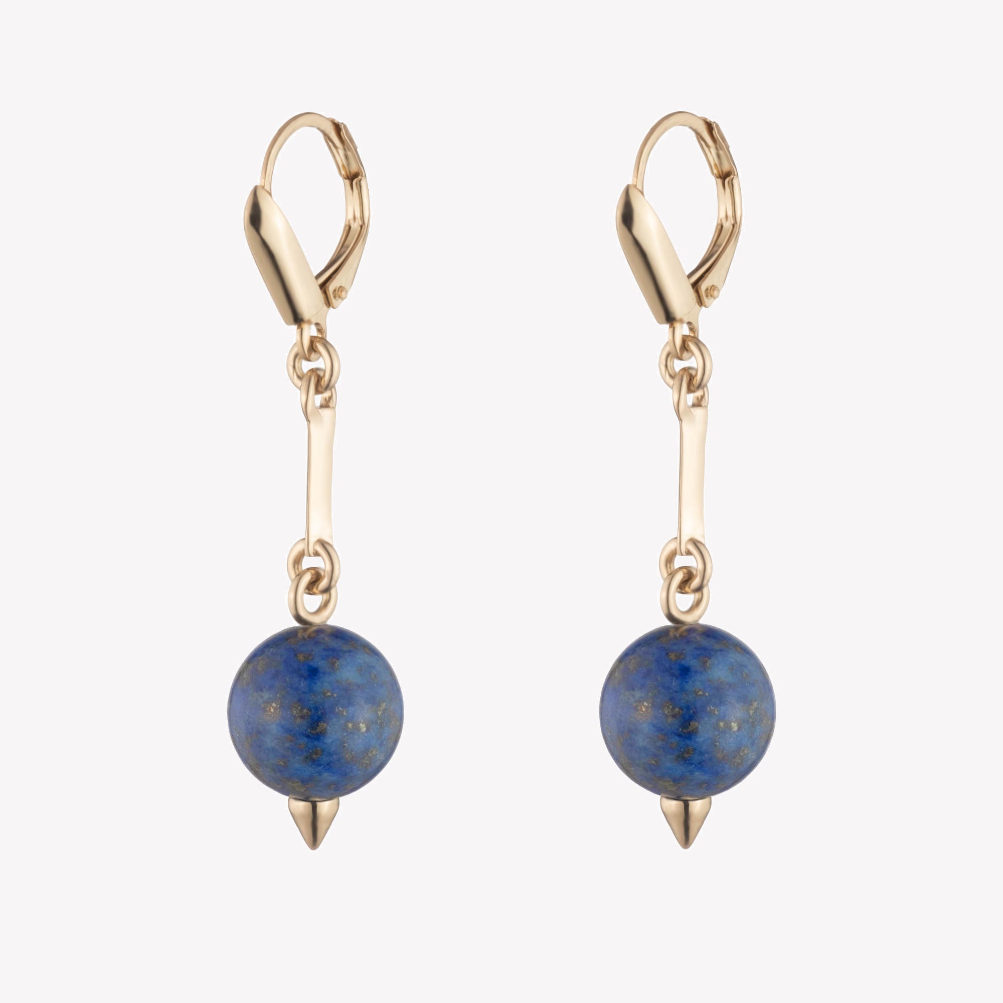 BEADED SPHERE DROP EARRINGS - LAPIS LAZULI