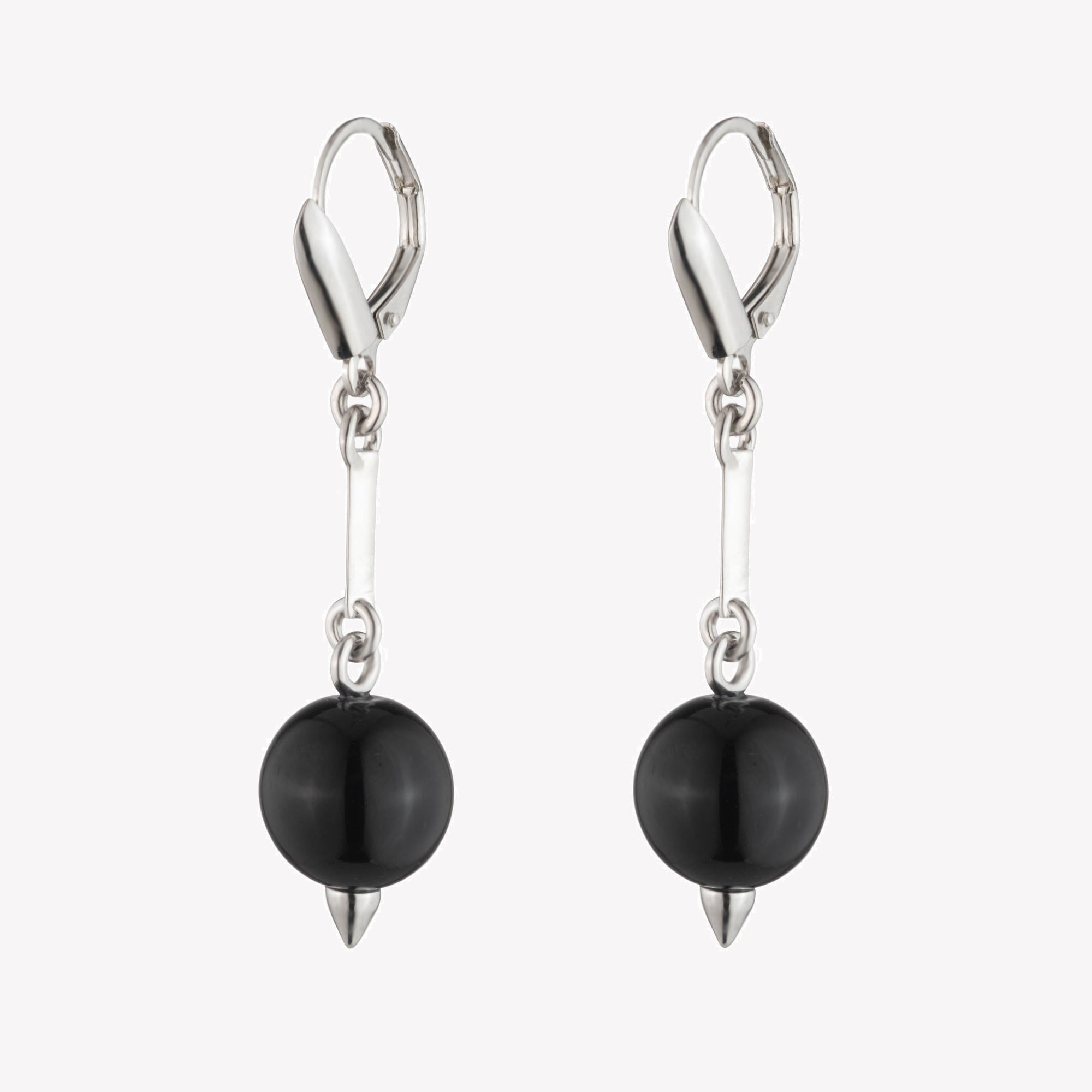 The Beaded Sphere Drop Earrings, finished in Silver, suspend a hand cut Onyx orb from a delicate bar chain. These artful earrings are entirely created by hand and are lightweight and can be worn throughout the day. Secure with a custom Eddie Borgo french clip, for pierced ears.