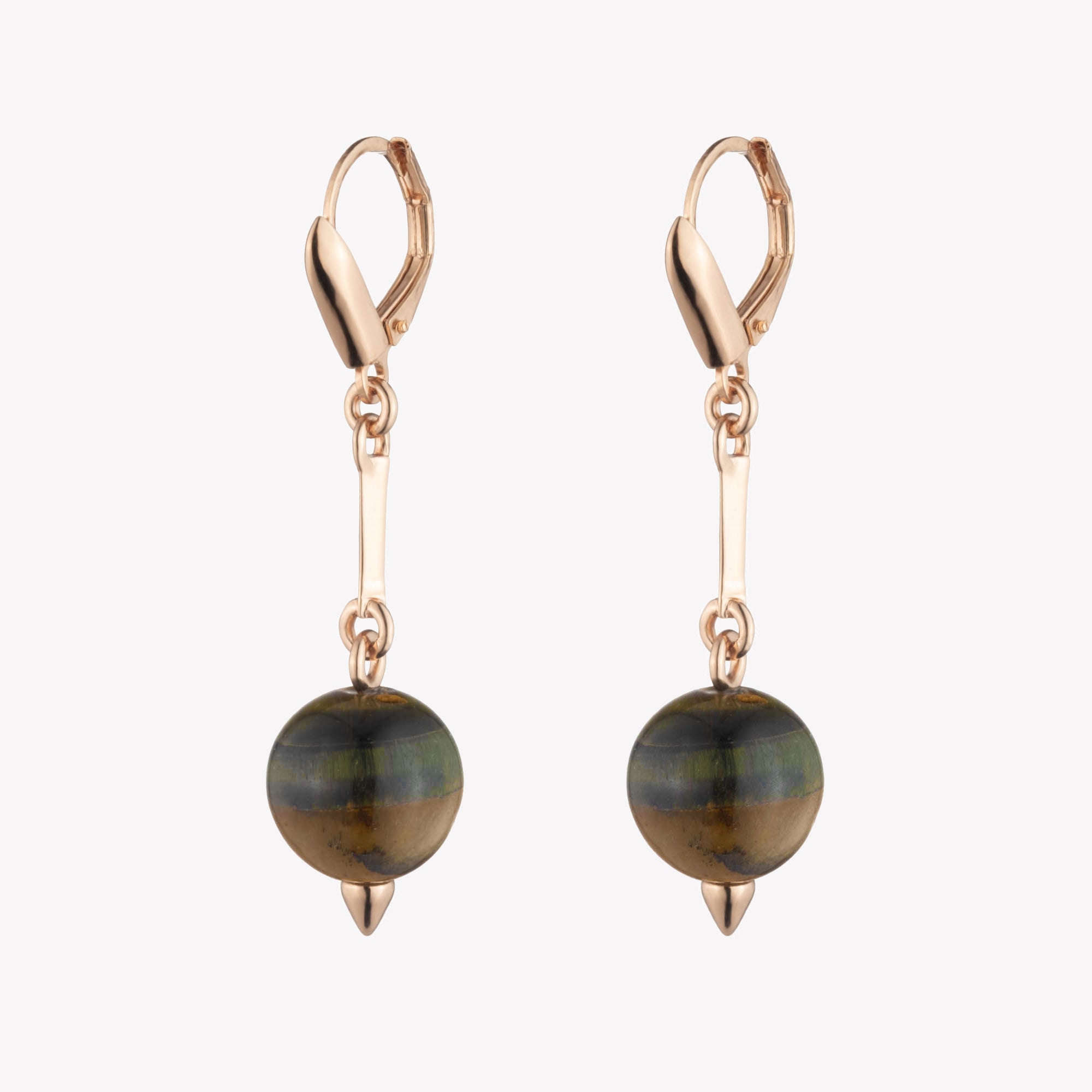 BEADED SPHERE DROP EARRINGS - TIGER EYE