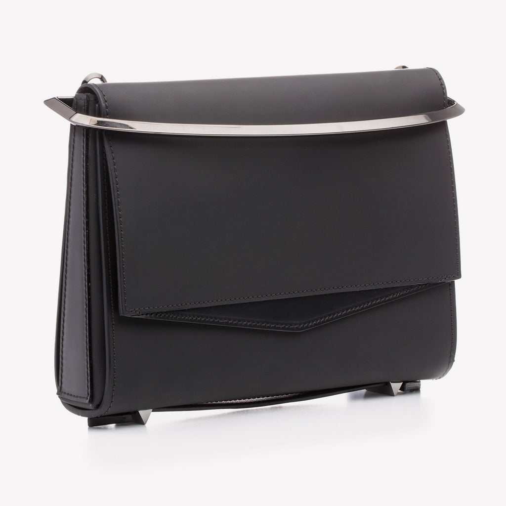 The Boyd Small Clutch is a classic Eddie Borgo handbag. Created in Italy, from smooth matte calf leather, finished with a sleek silver, hinged top handle. Attach the optional strap to wear yours on the shoulder during the day, or use the clever base strap to slip your hand into when you wear as a clutch for an evening out.