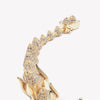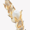 The Graduated Rose Bracelet, finished in gold, has been accented with a lacquered porcelain rose at its center, surrounded by hand carved petals. Handcut pavé crystal has been carefully set into eighteen graduated cone stations at either side.