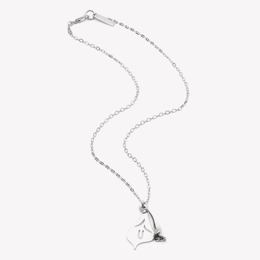 The Calla Lily Necklace, finished in Silver, is created from a hand forged, oval cable link, hung with two delicate, overlaid Calla Lily charms. A hand sculpted Calla Lily bulb is layered over an flat, carved Calla Lily silhouette. Secures with a custom Eddie Borgo clip closure.