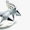 THE CAP CUFF, finished IN SILVER, IS A CLASSIC CUFF BRACELET, TAPERING IN WIDTH FROM THE FRONT TO THE BACK. THIS DOMED STYLE HAS BEEN INTRICATELY MADE BY HAND, HAMMERED TO FIT PERFECTLY OVER THE WRIST. SLIP ON TO WEAR, THE INTERIOR HAS BEEN COMPLETELY CAGED FOR COMFORT.
