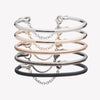 The Chain Latch Cuff Parure combines all of our metal finishes - silver, 12 karat gold, 12 karat rose gold, antiqued silver and matte black enamel - into one set of linear cuff bracelets. Wear them together as a set or separate; combine one with your timepiece. A delicate chain closure on each drapes down the back of the wrist. A perfect gift when paired with our Classic Door Latch Cuff.