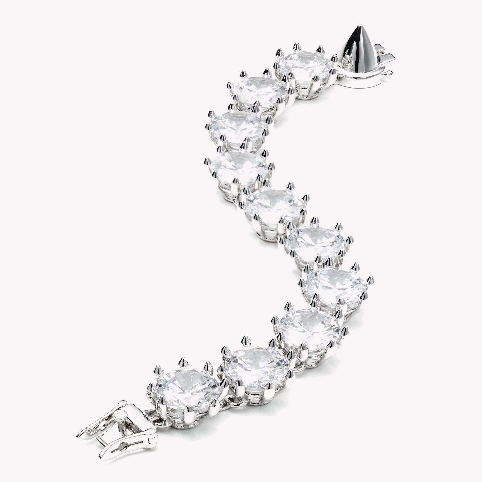 The Circle Estate Bracelet, finished in Silver, is an Eddie Borgo classic. Bezel set with hand cut crystals, this bracelet has been carefully hinged to move fluidly and sit comfortably on the wrist. A custom Eddie Borgo box closure secures with two safety latches.