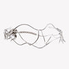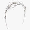 THE Climbing Rose Headpiece, finished in silver, HAS BEEN CREATED FROM TWISTING, ROUNDED WIRE, ACCENTED WITH PAVÉ ACCENTS, A SINGLE WHITE PORCELAIN ROSE, AND DELICATE DANGLING fringe AT EACH SIDE. WEAR TO A WEDDING OR FOR A SPECIAL OCCASION. EASILY SLIPS ONTO THE HEAD, THE END CAPS HAVE BEEN ROUNDED FOR COMFORT.