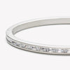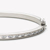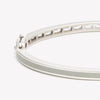 The Color Cuff, finished in Matte Silver, is a clean, architectural cuff bracelet, hinged at one side to easily slip over the wrist. The cuff has been hand bezel-set with faceted baguettes of crystals on one side, and inlaid with a band of dove grey cloisonné enamel on the other side. Wear this piece to feature either the crystals in the front or the band of enamel in the front. Custom Eddie Borgo safety latches secure this piece around your wrist.
