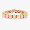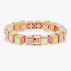 The Mosaic Cube Bracelet, finished in 12 karat rose gold, is a playful take on our signature cube bracelet. The individual cubes have been carefully inlaid with bright citrine stones and finished with a soft pink ground enamel. Wear this bracelet on its own or alongside your timepiece.