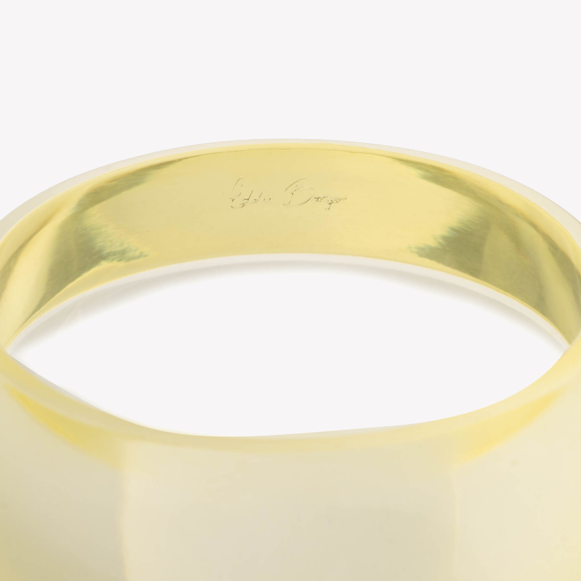 The Poured Resin Bangle IS AN ARCHITECTURAL BRACELET, CREATED BY HAND OF POURED RESIN IN A UNIQUE, TRANSPARENT AMBER YELLOW COLOR. THIS BRACELET IS ONE OF A FEW PIECES OF ITS KIND, PART OF A SMALL BATCH OF SPECIALLY-CRAFTED ITEMS IMAGINED BY THE EDDIE BORGO STUDIO IN LOS ANGELES.
