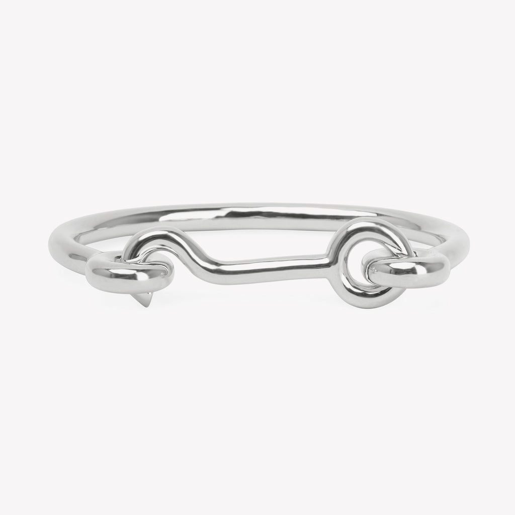 The Door Latch Cuff, finished in Silver, is an Eddie Borgo classic. Wear as a chic statement alone, or wear alongside our chain latch cuff. Easily opens by lightly pulling the latch open and sliding onto the wrist.