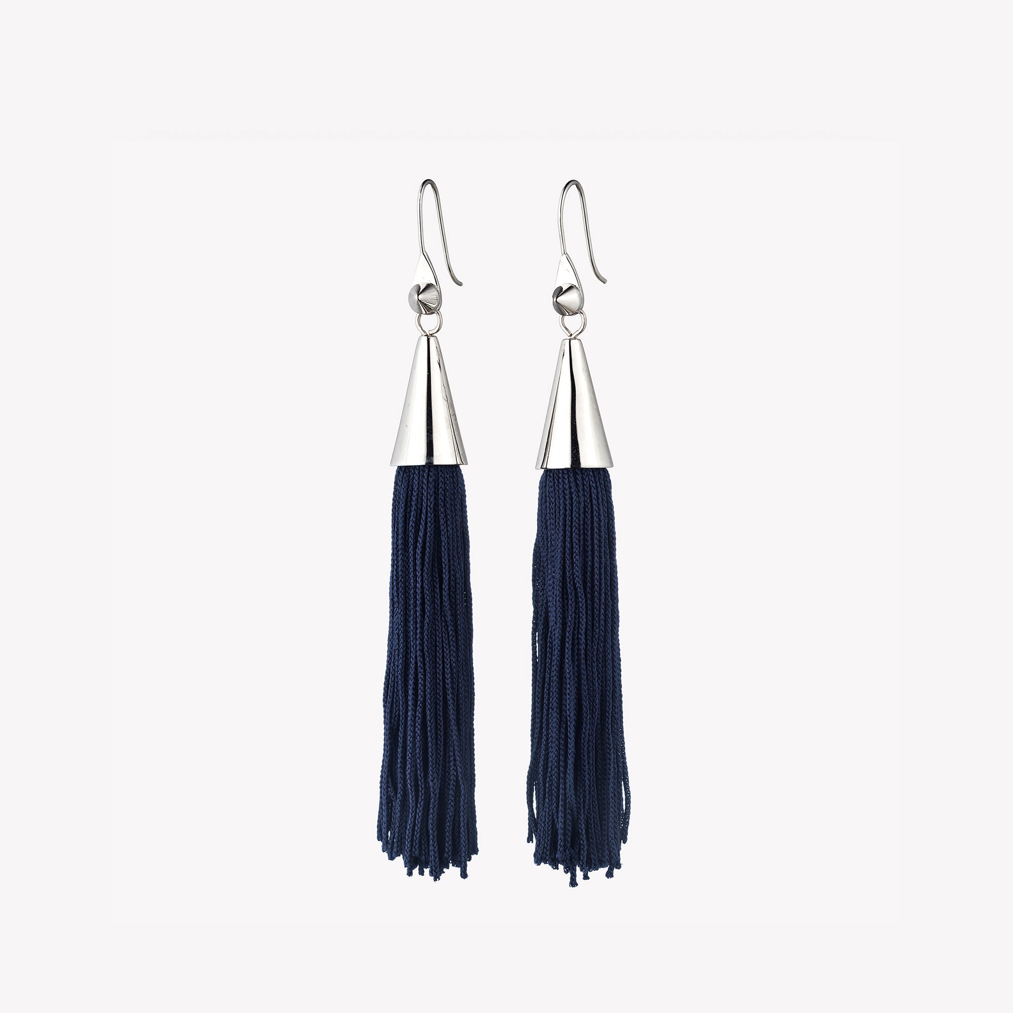 An Eddie Borgo classic, The Small Tassel Earrings are beautifully crafted, composed of a Dark Navy Blue tassel, hand threaded into a conical cap, finished in silver. Light in weight, these earrings are easy to wear throughout the day. Ear wire, for pierced ears.