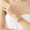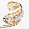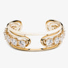 The Estate Cuff, finished in 12 Karat Gold, was created from a single faceted bar, hand formed into a structured cuff bracelet. Twelve faceted, round cut crystals are prong set into the piece. Secure with a custom Eddie Borgo latch.