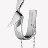 Juxtaposing structured form with fluidity, the Folded Hoop Earrings, finished Silver, give new dimension to a classic oval hoop style by showcasing the elegant fluidity of folded metal. Created by hand, these unique earrings were first finished as a simple band, the fold was then hand hammered to create the draped effect. A delicate cable chain drapes over the the exterior of each piece. Secure with a custom Eddie Borgo earring back. Surgical steel posts, for pierced ears.
